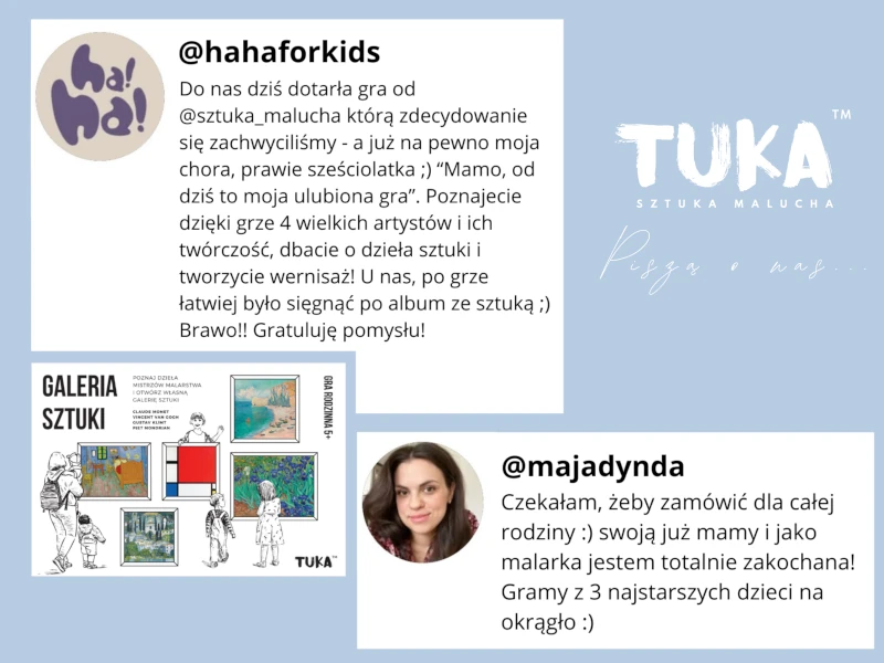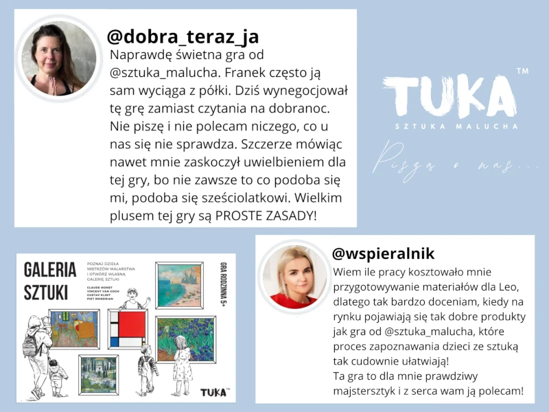Sztuka jest dla każdego, bez względu na wiek. Nasze puzzle i gry oswajają dzieci z wielkimi dziełami już od najmłodszych lat, kształtując ich wrażliwość, wyobraźnię i gust. Każda reprodukcja jest starannie dobrana, by była odpowiednia dla małego odbiorcy.